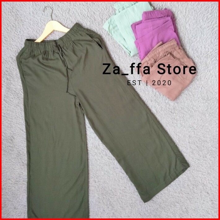 Loose Pants Highwaist Uniqlo Rayon Twill Premium Tebal Lembut Realpict Kulot Panjang Wanita Relaco Uniqlo