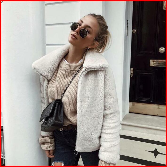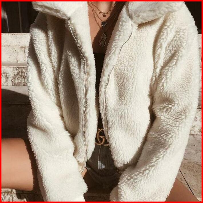 Sweater Wanita Jaket Crop Zipper Sherpa Bulu Domba Tebal Winter Fit Casual