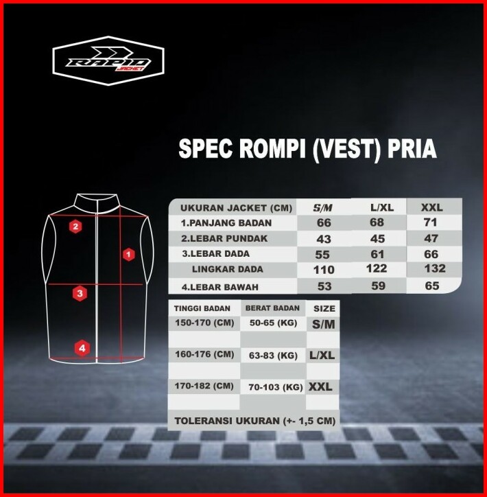 Rompi Motor Premium Rompi Rapid Wings Warna Hitam Dalaman Full Dacron