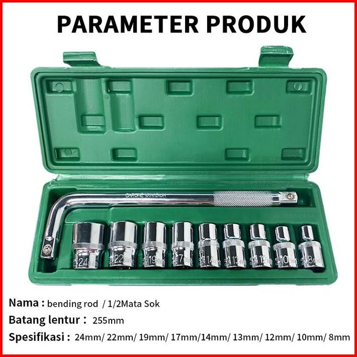 Isku Kunci Sok Set L 8-24mm 10 Pcs Kunci Sock Set 1 2 Inch