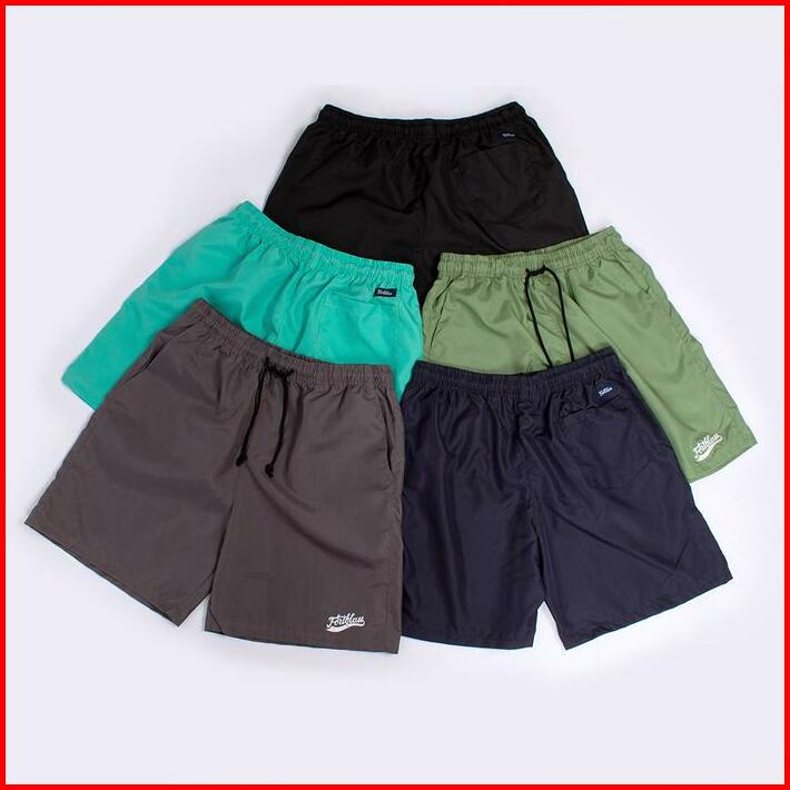 Fortklass Store Celana Pendek Parasut Olahraga Saku Resleting Pria Wanita Running Gym Sport Kolor Jogging Bahan Berkulit