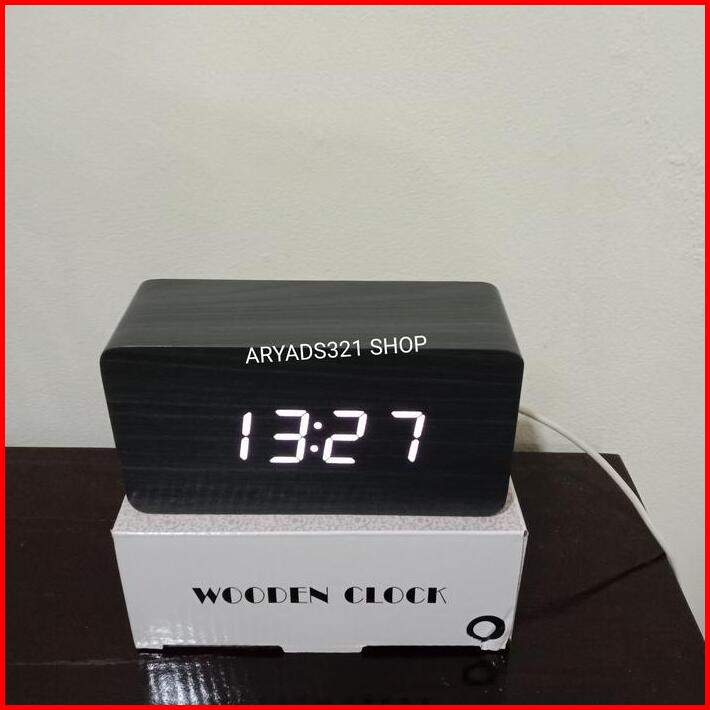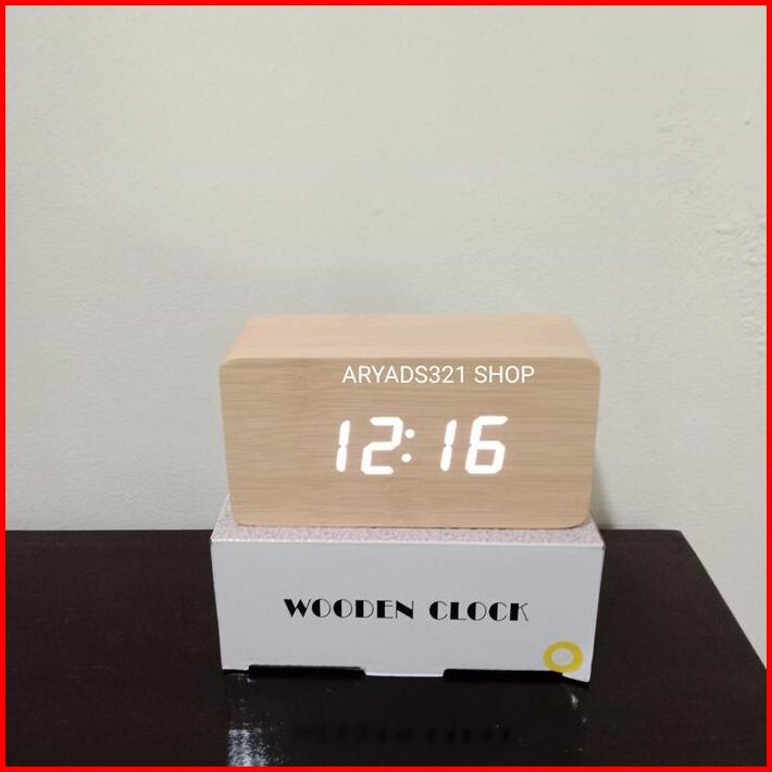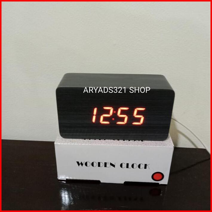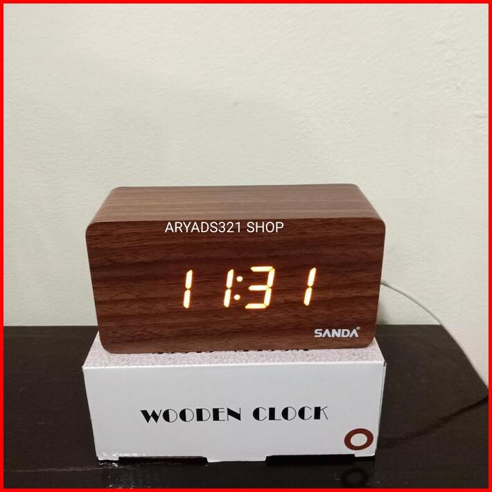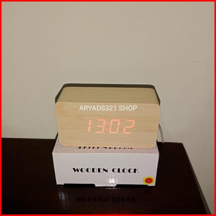 Jam Meja Kayu Digital Led Alarm Wood Clock 01