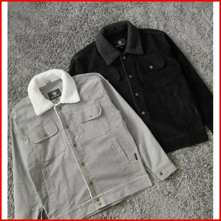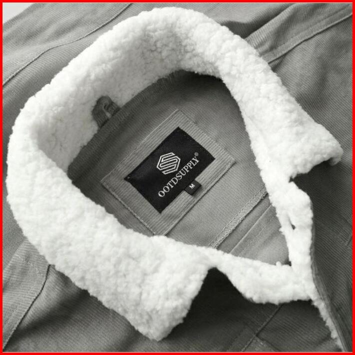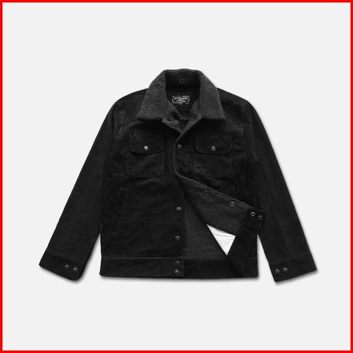 Ootdsupply Corduroy Sherpa Jacket Black Jaket Corduroi Outerwear