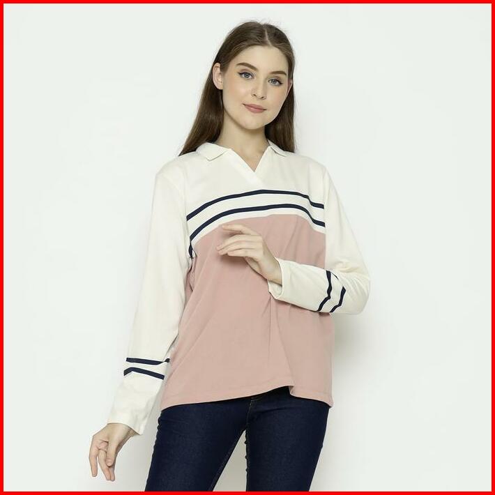 Hammer Women Striped T-shirt A5ots28 Kaos Reguler Fit Wanita Biru Pink