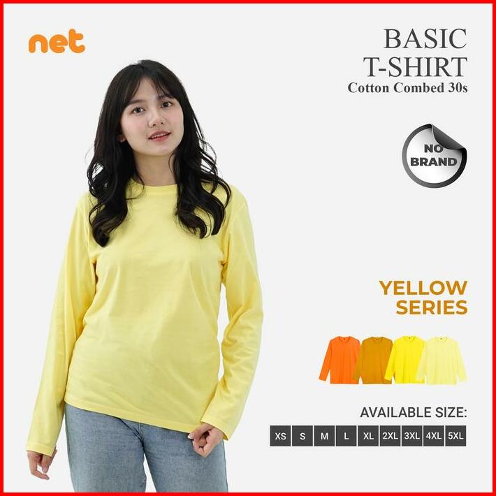 Kaos Polos Wanita Soft Cotton Combed 30s Kaos Lengan Panjang Oneck Reguler Fit Basic Long Sleeve Unisex T-shirt Yellow S