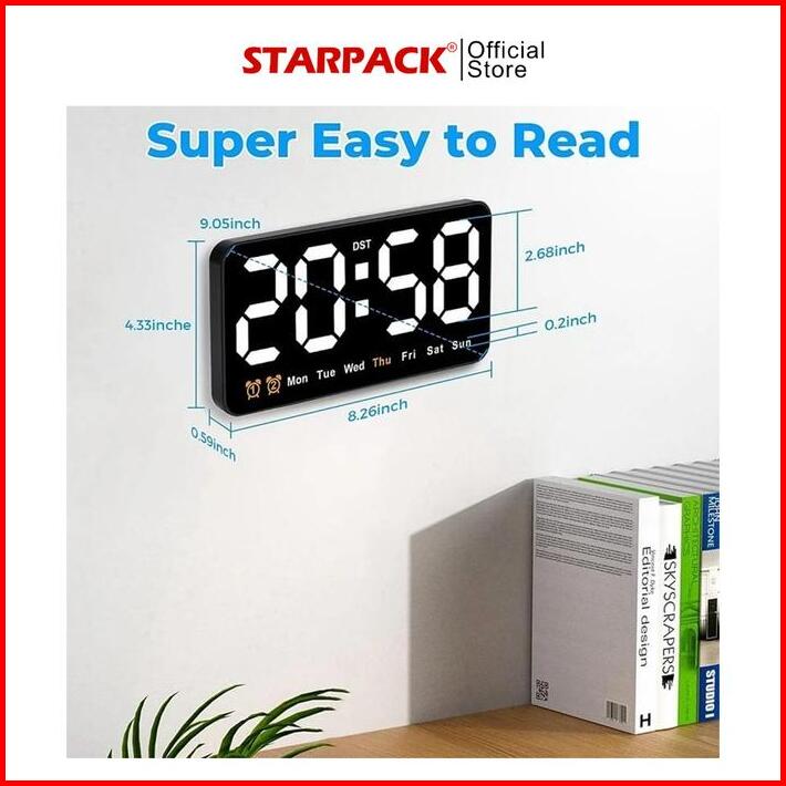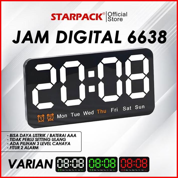 6638 Jam Dinding Meja Digital Led Tampilan Jam Hari Bisa Baterai Usb