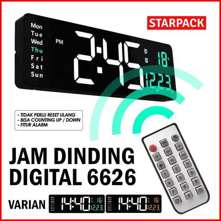Jam Dinding Digital Led Wireless Tampilan Tanggal Suhu 6626
