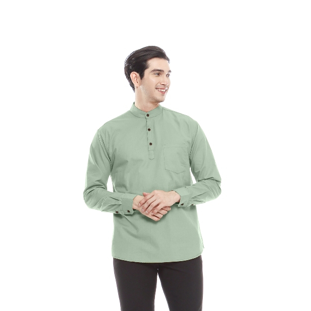 Outskirts - Kemeja Koko Sage Green Pria Lengan Panjang Slimfit