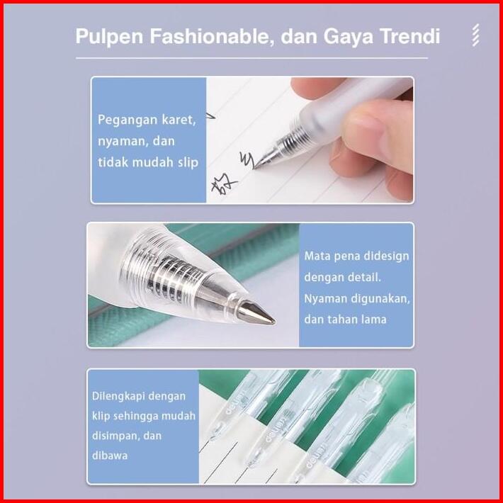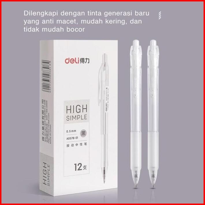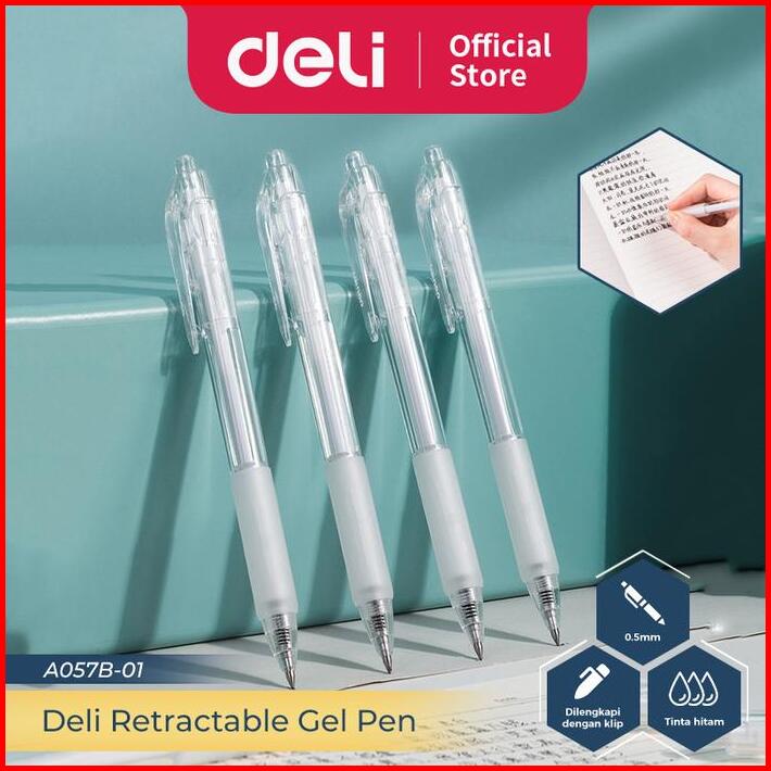 Deli Retractable Gel Pen Pulpen Cetek 0.5 Mm Isi 12 Pcs A057b-01-12p