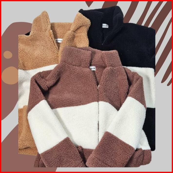 Sweater Jaket Sherpa Wanita Gemass Bulu Fit Casual Cewek Panjang Tebal