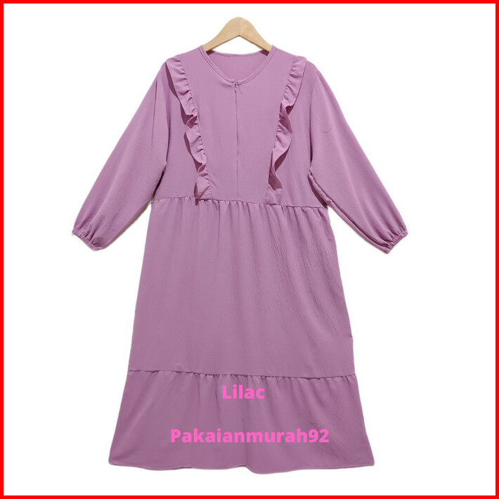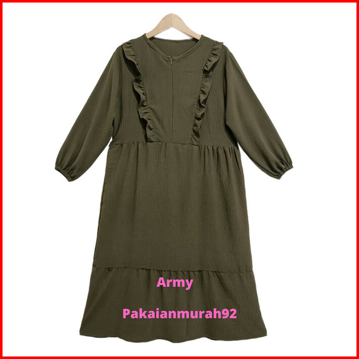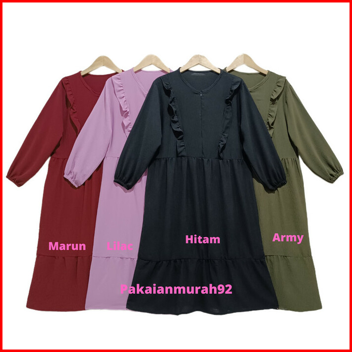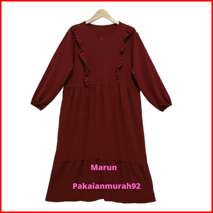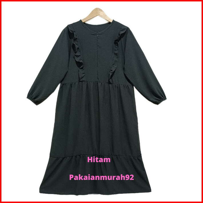Gamis Rempel Susun Polos Bahan Crinkle Airflow Gamis Midi