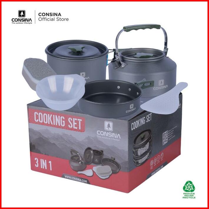 Consina Cooking Set 3 Person Alumunium Camping Outdoor Hiking