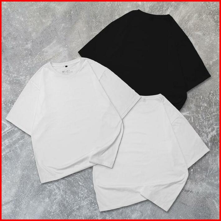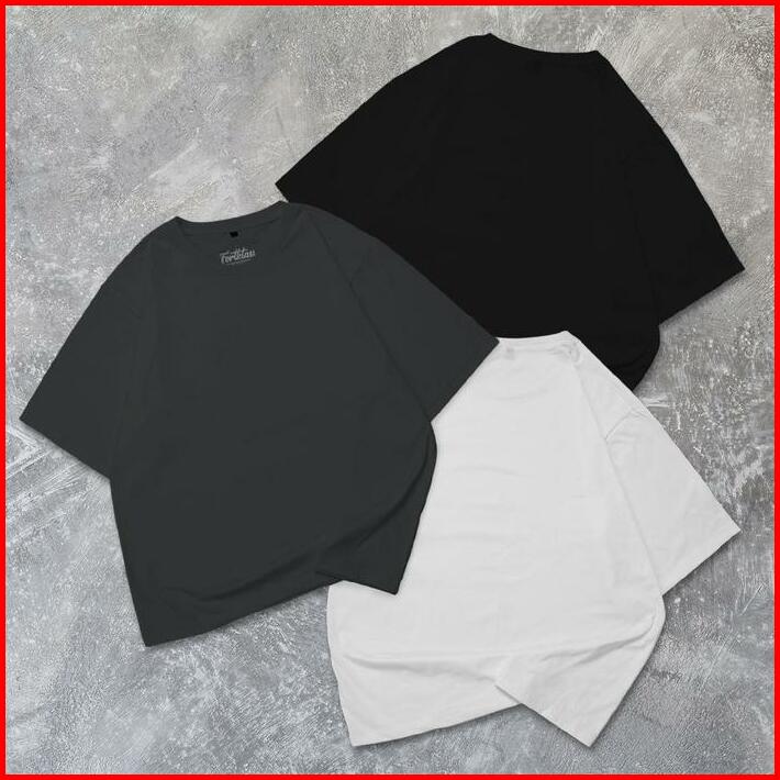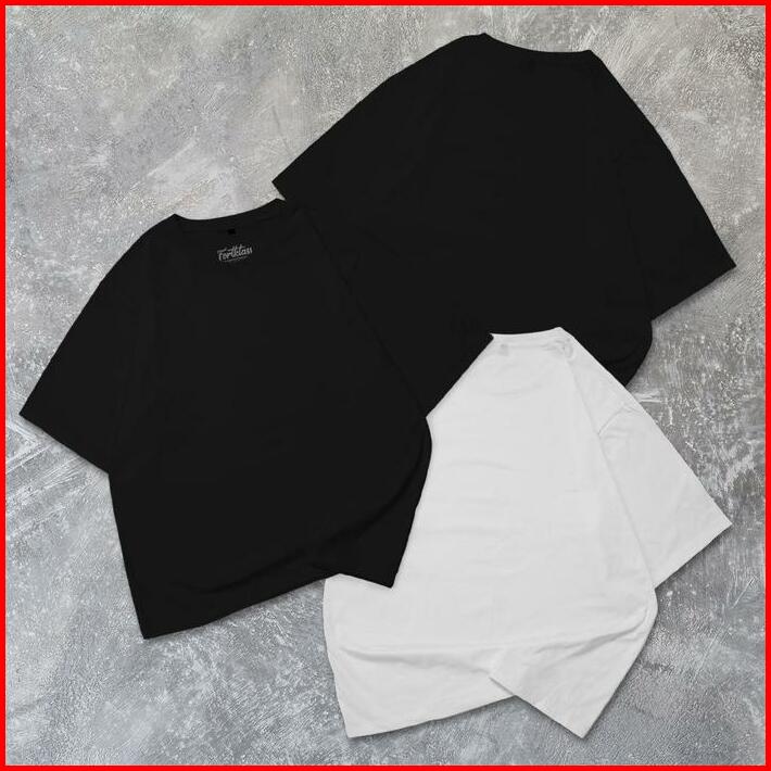 Fortklass Store Ovesize Polos Kaos Pria Lengan Pendek Kaos Unisex Kaos Big Size Lembut Panjang Distro Oblong Putih Hitam