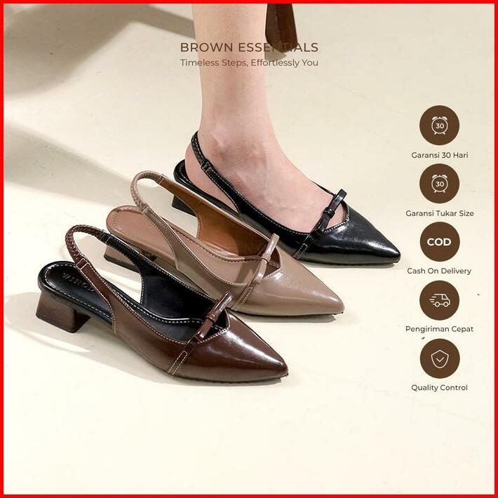 Winod Ivoria Heels Wanita Hak 3cm Sepatu Kerja Elegan Model Slingback Brown Essentials Daily