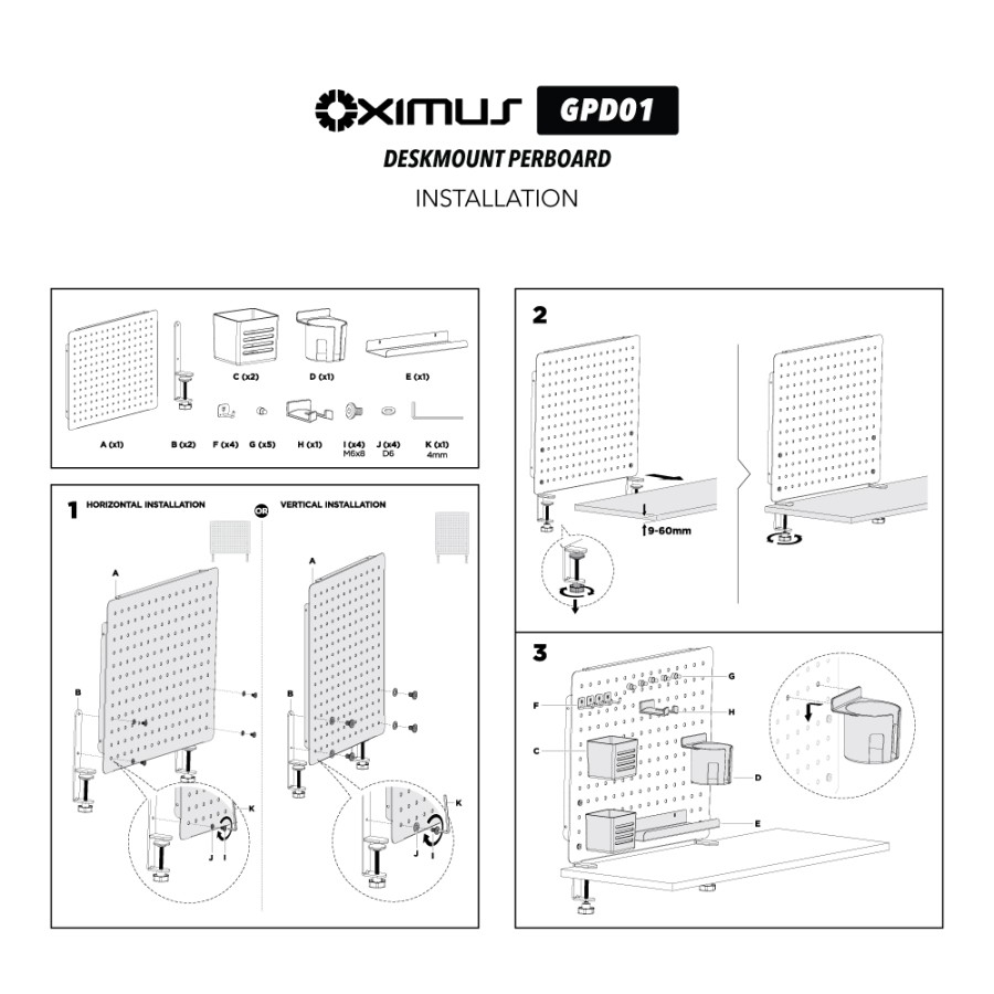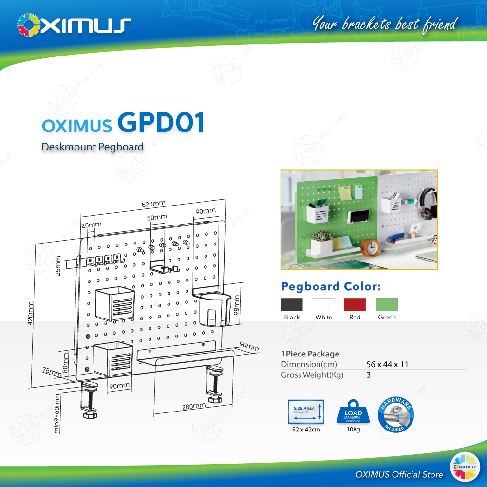 Pegboard Modular OXIMUS GPD01 GPD02 Deskmount Rak Meja DIY Organizer