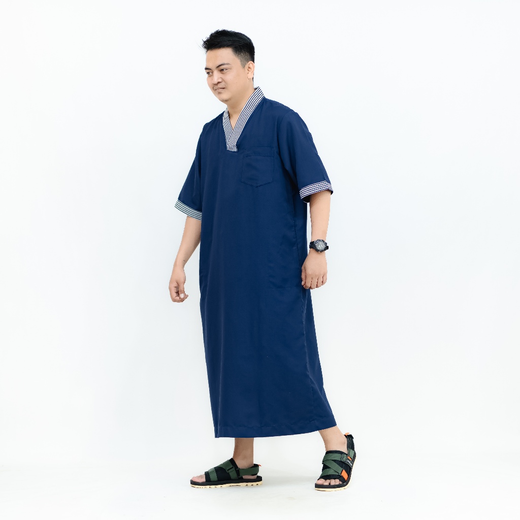 Jubah pria dewasa lengan pendek maroko kerah v bahan katun