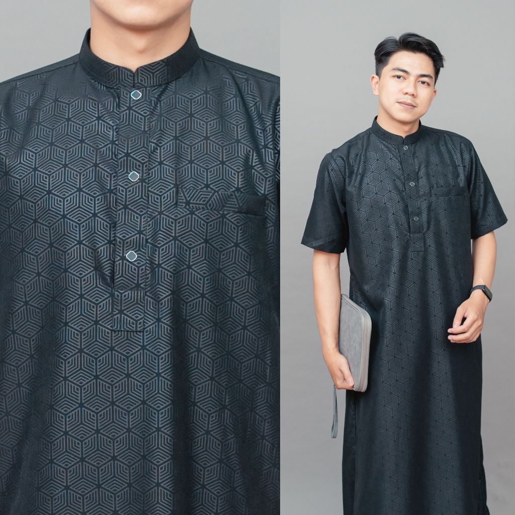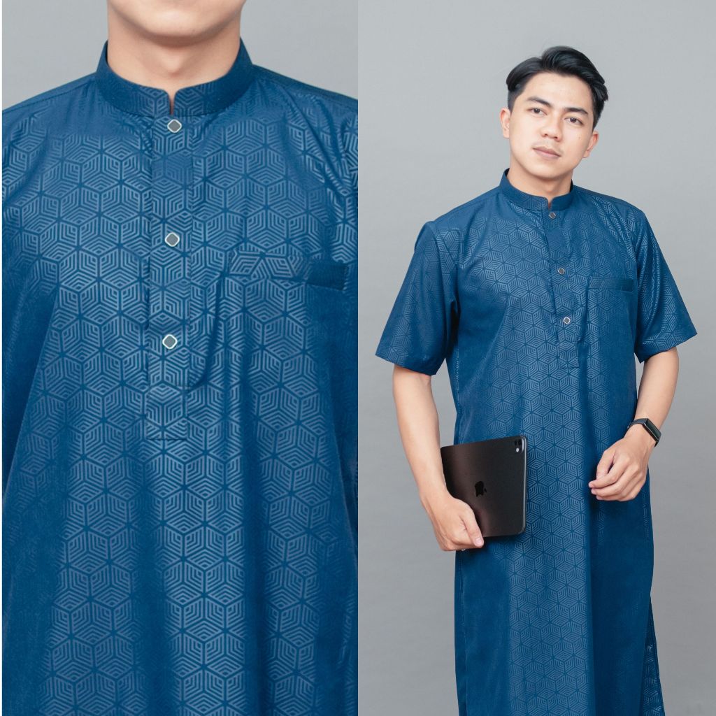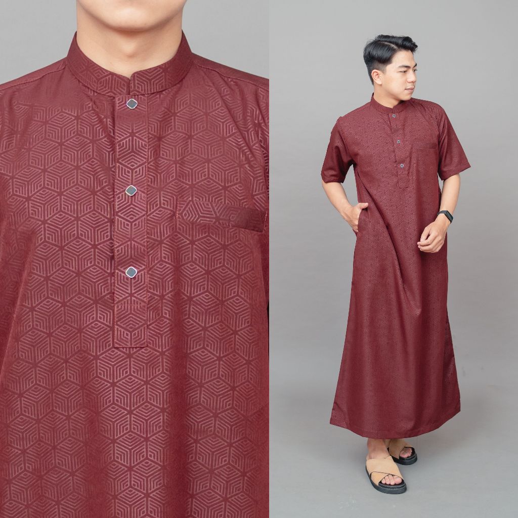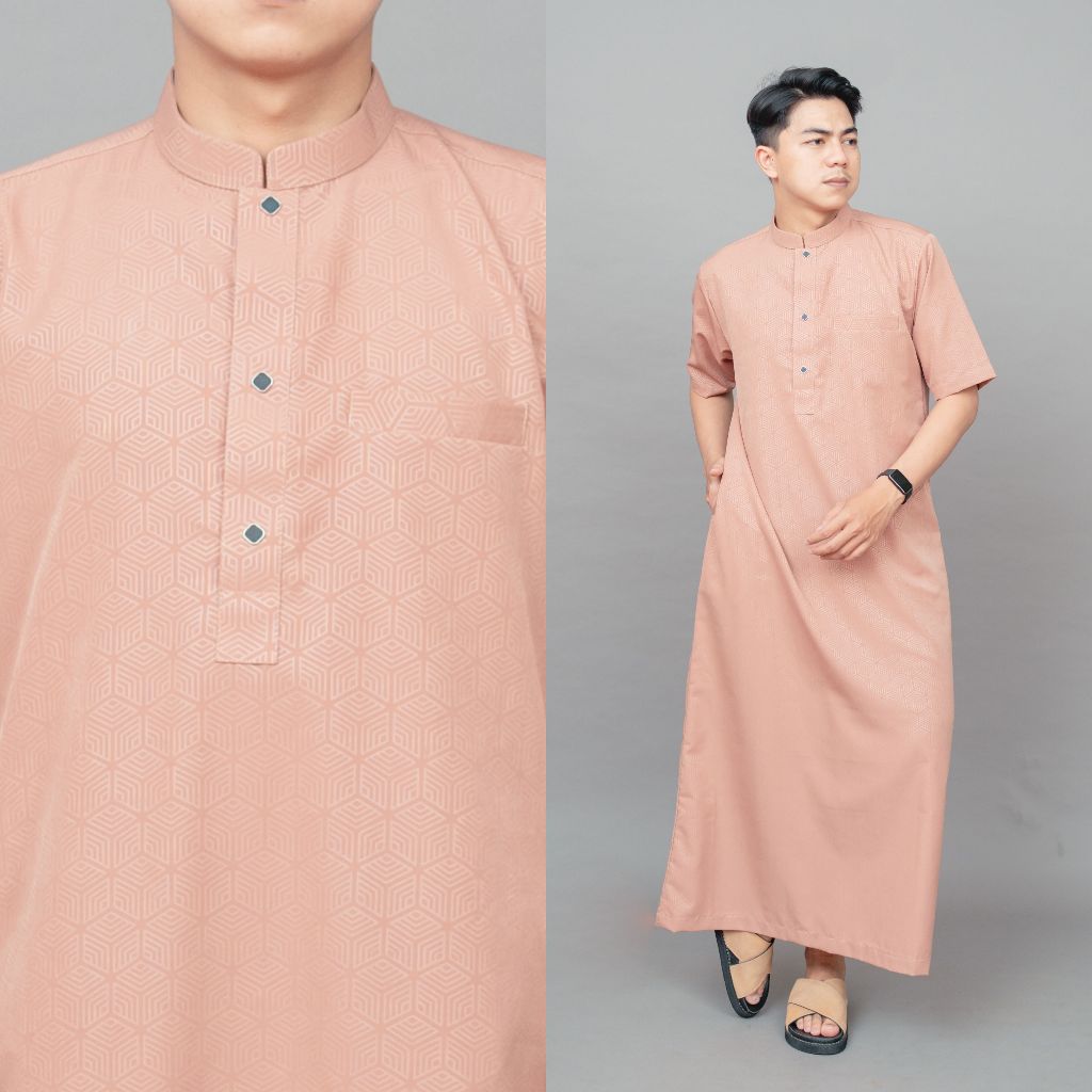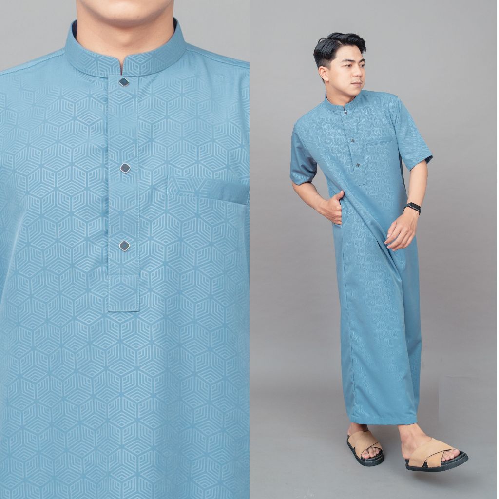 Jubah gamis pria lengan pendek bahan embos super adem jubah Dhuha slimfit premium terbaru JDA Dhuha couple