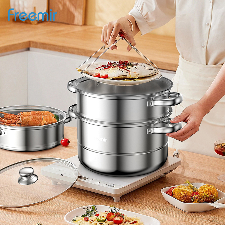 freemir Panci Kukus Panci Rebus Stainless Steel Tutup Kaca 3 Tingkat 26 cm Garansi Kerusakan