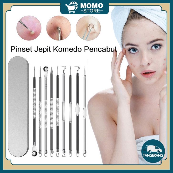 9Pcs/Setset Alat Pencabut Komedo/Pembersih Pencetan Jerawat ackhead Stainless Steel