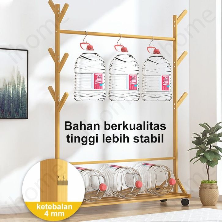 IH Rak Baju Celana Dengan 4 Roda/Gantungan Baju Celanan/Rak Gantung Baju Kayu/Stand Hanger Double