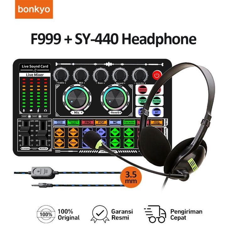 Bonkyo F999 + Headphone Berkabel sound card set TIKTOK bernyanyi mixer ponsel khusus perekaman lagu K profesional