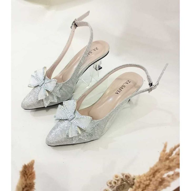 Heels Wanita Terbaru Hak Kaca Wanita 5 Cm Slingback Glitter Pita Terlaris Gratis Ongkir