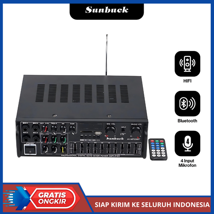 SUNBUCK AV-MP326BT - BLUETOOTH EQ AMPLIFIER KARAOKE FM 2000W ORIGINAL OFFICIAL STORE