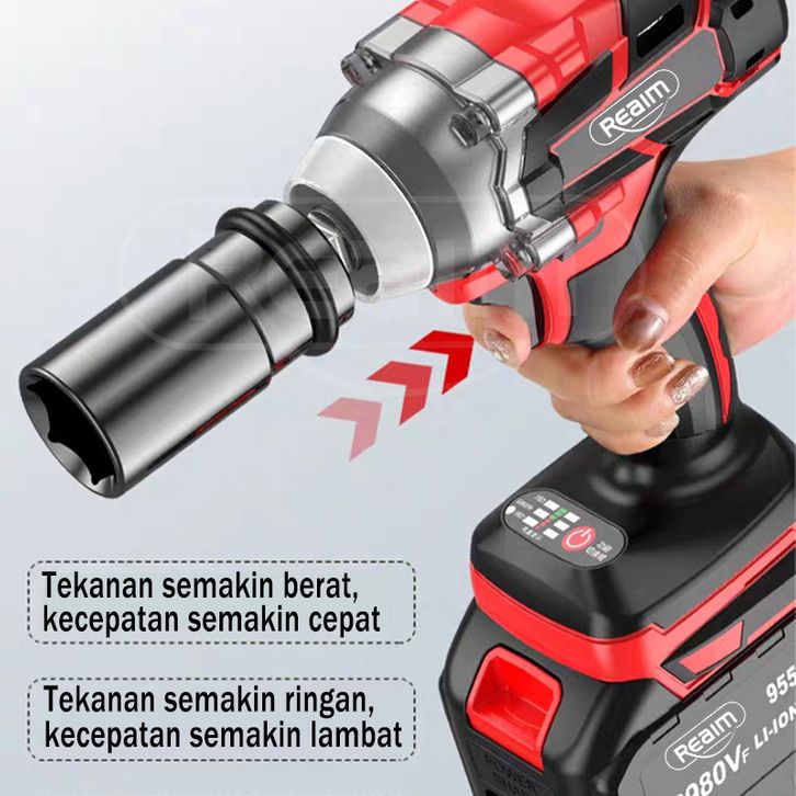 Reaim Impact Wrench Cordless 888V Brushless Bor Impact Baterai Mesin Impact Buka Baut Cordless Electric Wrench Rechargea