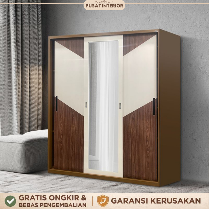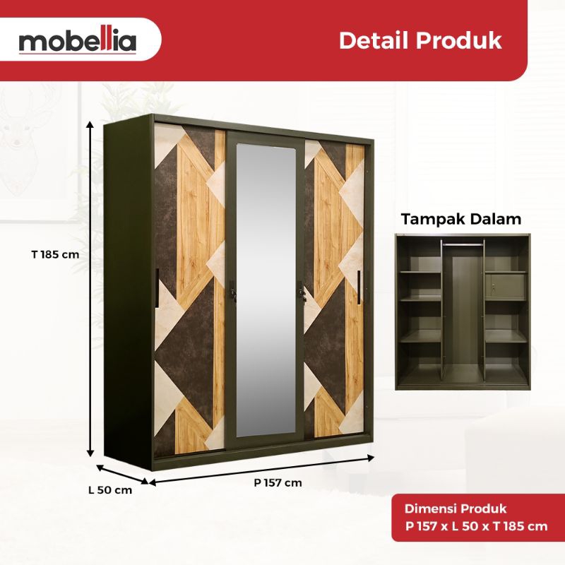 lemari besi pakaian 3 pintu sliding lemari baju besi Gratis Ongkir