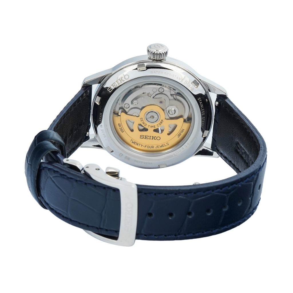 JAM TANGAN PRIA SEIKO PRESAGE SSA405J1 COCKTAIL TIME BLUE MOON OPEN HEART DIAL BLUE LEATHER STRAP ORIGINAL