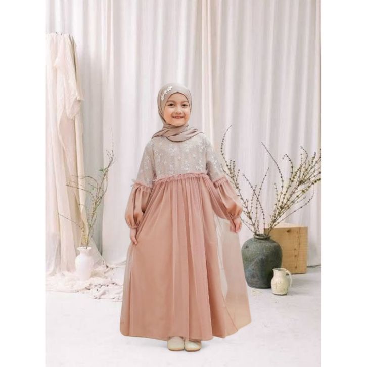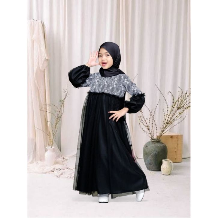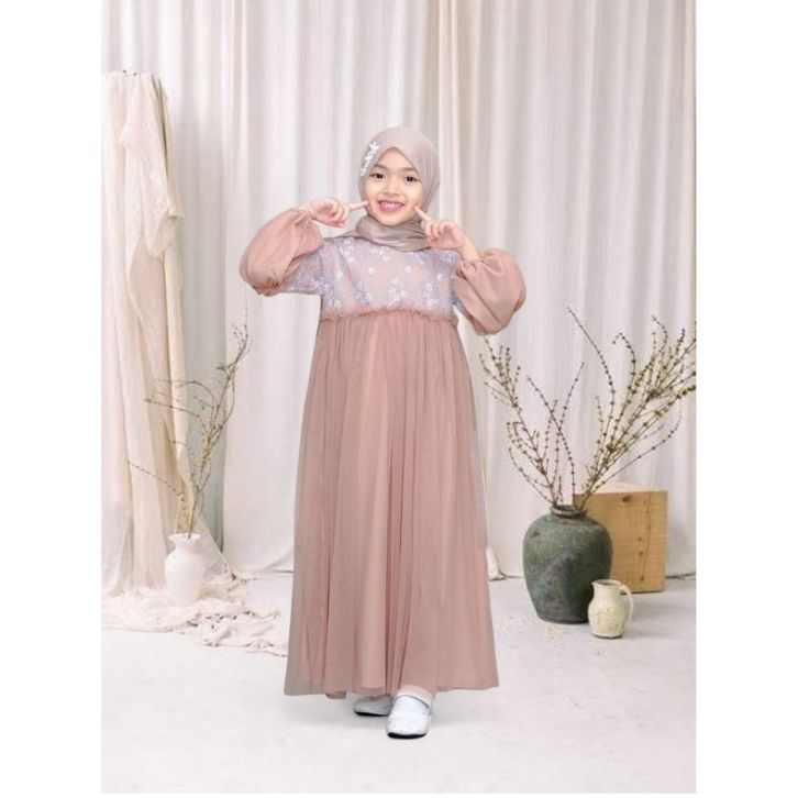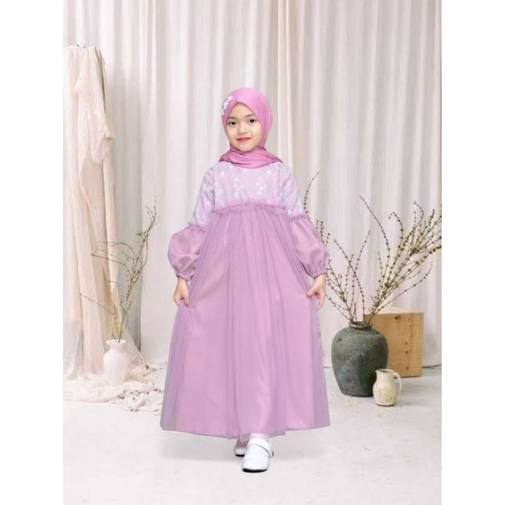 [Star]Gamis Anak Perempuan Usia 10-11-12-13-14-15 Tahun Padma Syari Kids Bahan Crinkle Airflow Mix Brukat 2025