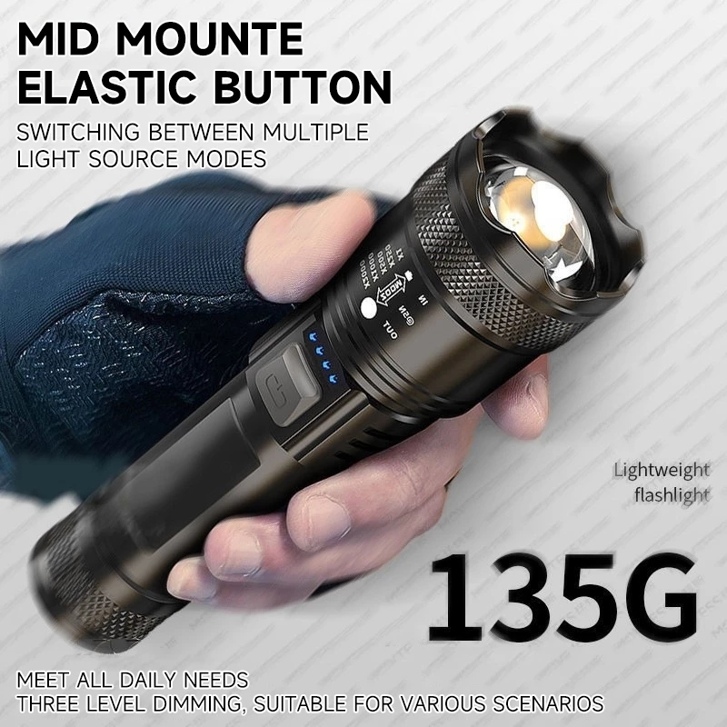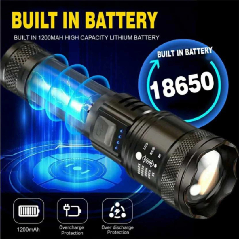 Senter LED Super Terang 10000 Lumens Jarak Jauh Ringan Tahan Air IPX4 Zoom / Rechargeable Senter