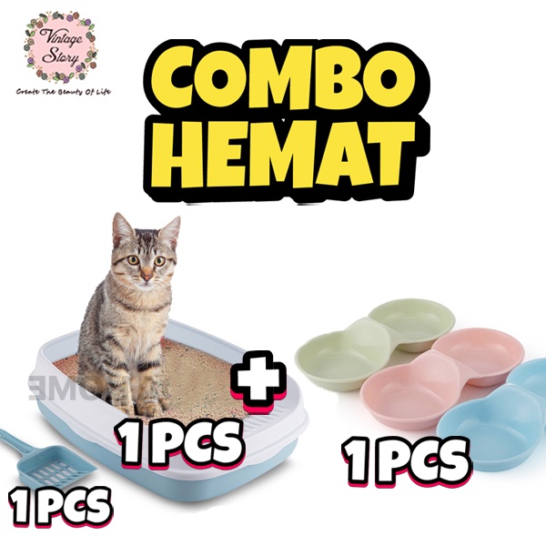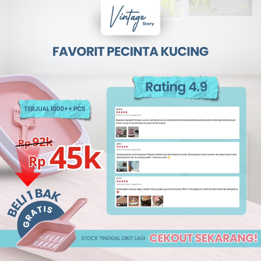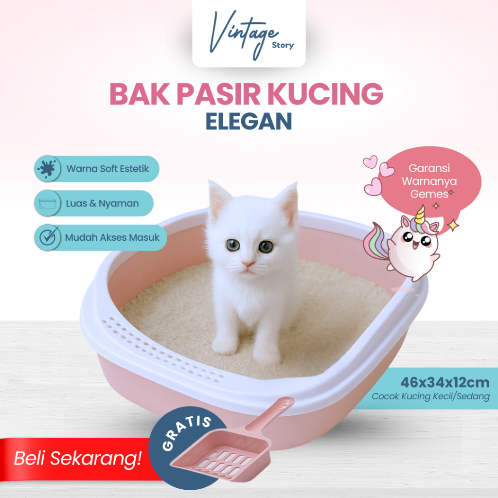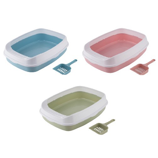 Tempat Bak Pasir Kucing Toilet Pup Baskom Kucing Litter Box Free 1 Sekop Serokan Pasir 46x34x12cm