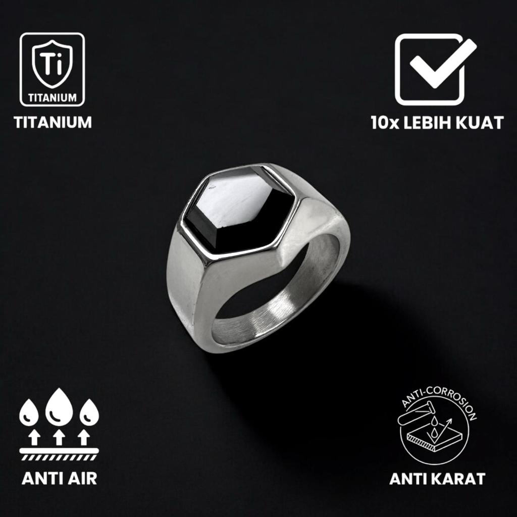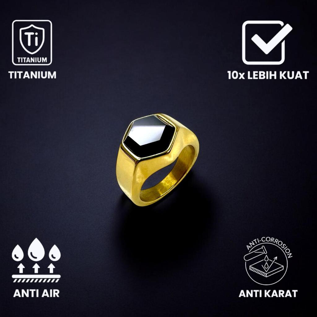 Cincin Pria Titanium Silver Gold Onyx Hitam Model Hexagon / batu cincin mewah termurah / batu cincin akik perhiasan