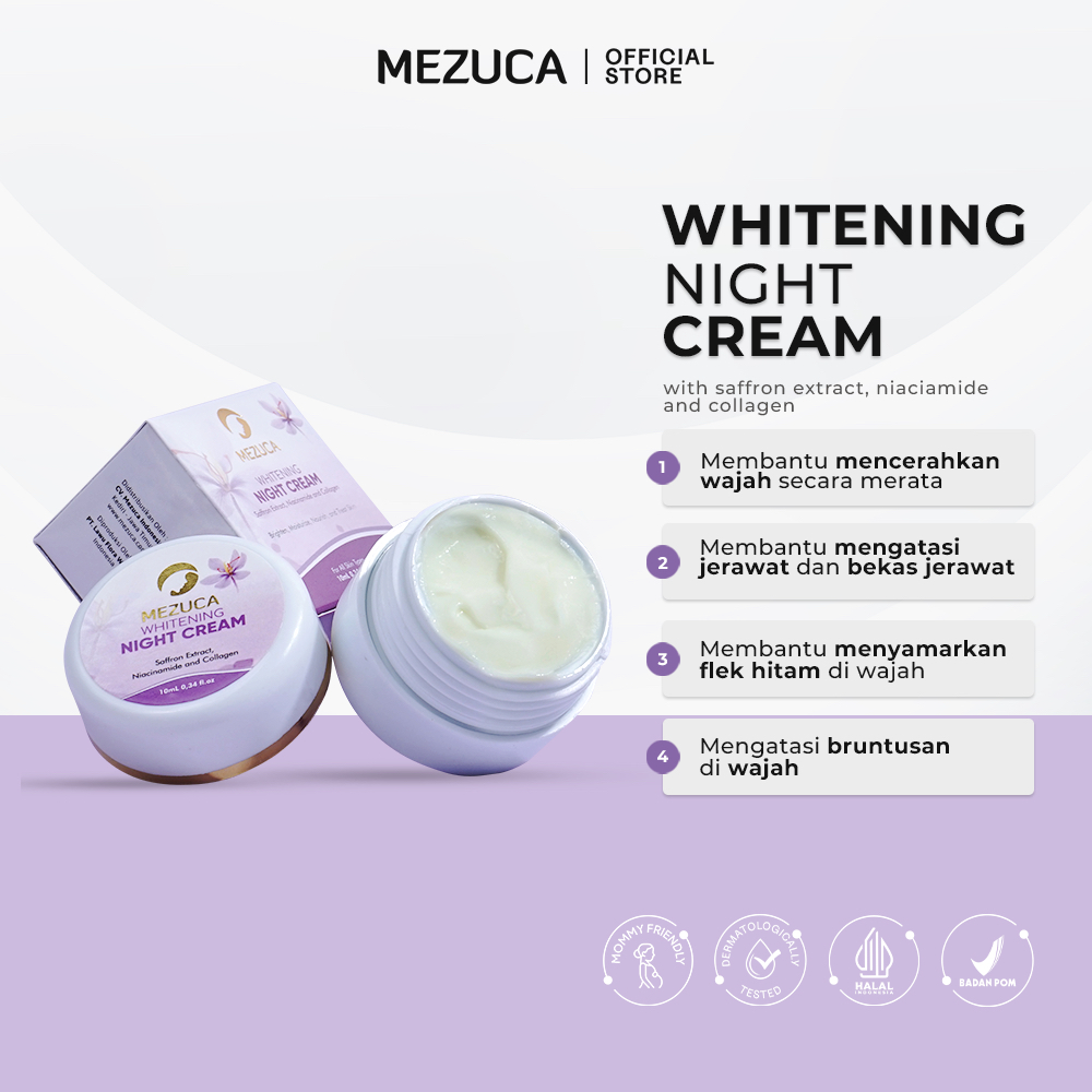 Night Cream Mezuca Krim Malam Mencerahkan Memutihkan atasi Jerawat Bekas Jerawat Flek Hitam di Wajah