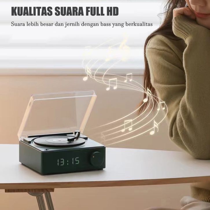 Round-X11 Atomic Speaker Bluetooth Jam Alarm Speaker Retro bentuk Vinyl Record Player