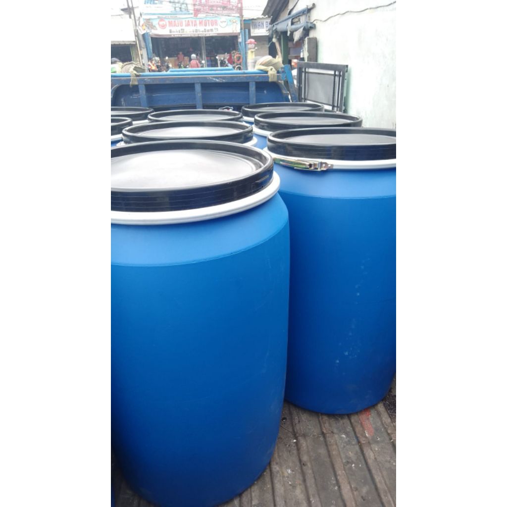 Drum Plastik HDPE 200 Liter Ex Industri Tutup Lebar Klem Jepit
