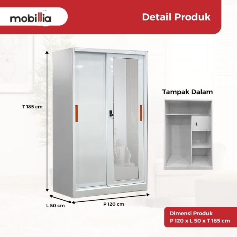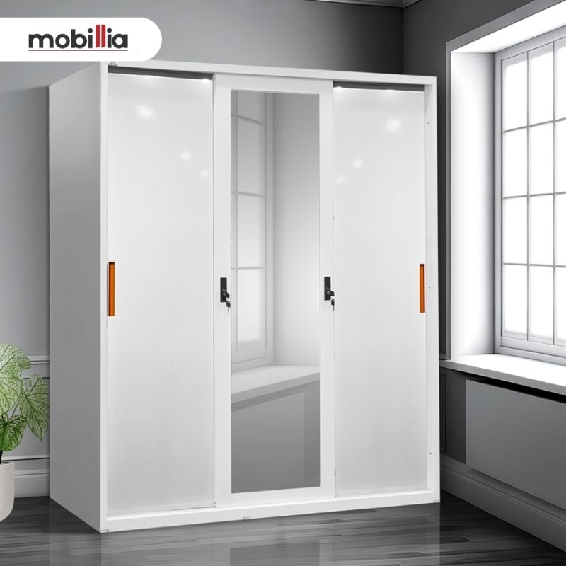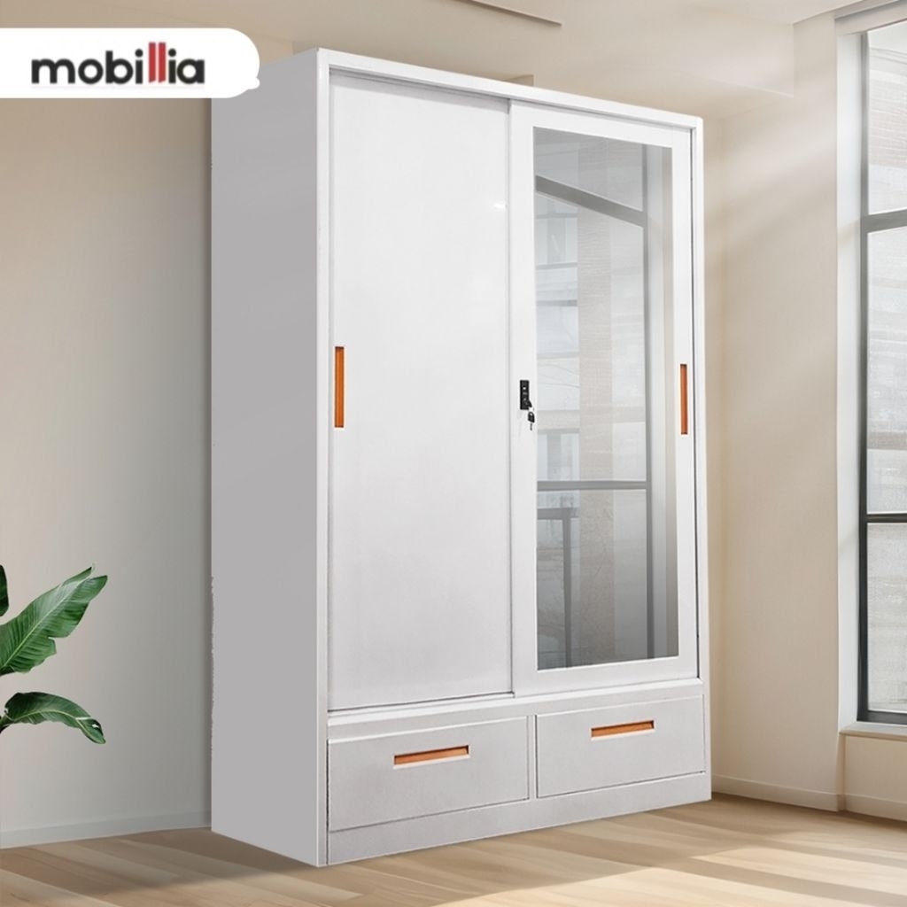 Lemari pakaian besi pintu sliding lemari baju besi Gratis Ongkir