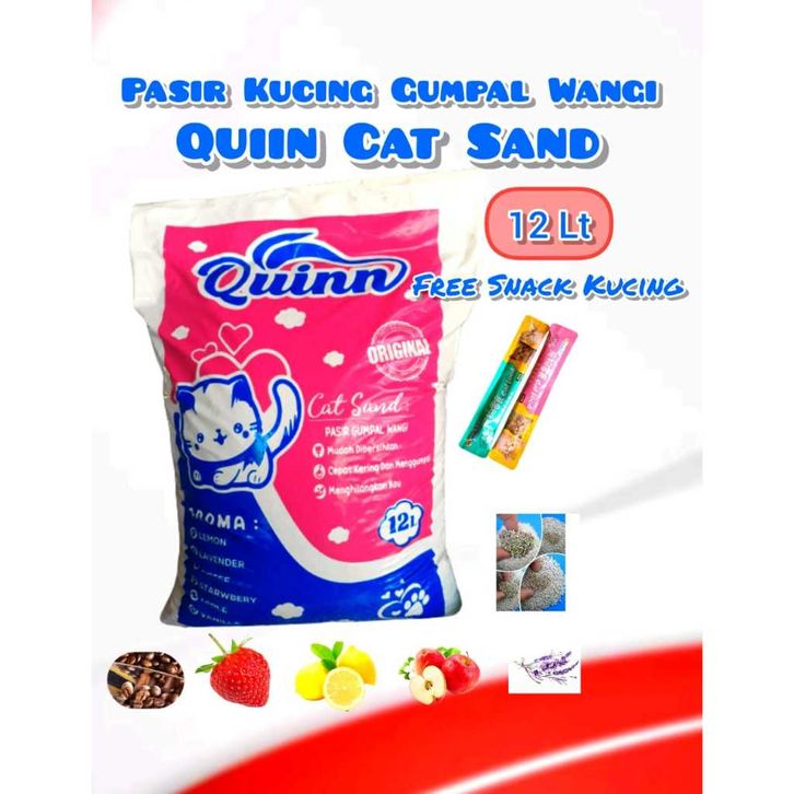 Pasir Gumpal Kucing Wangi QUINN 12 Liter -Free Snack Basah Cemilan Kucing