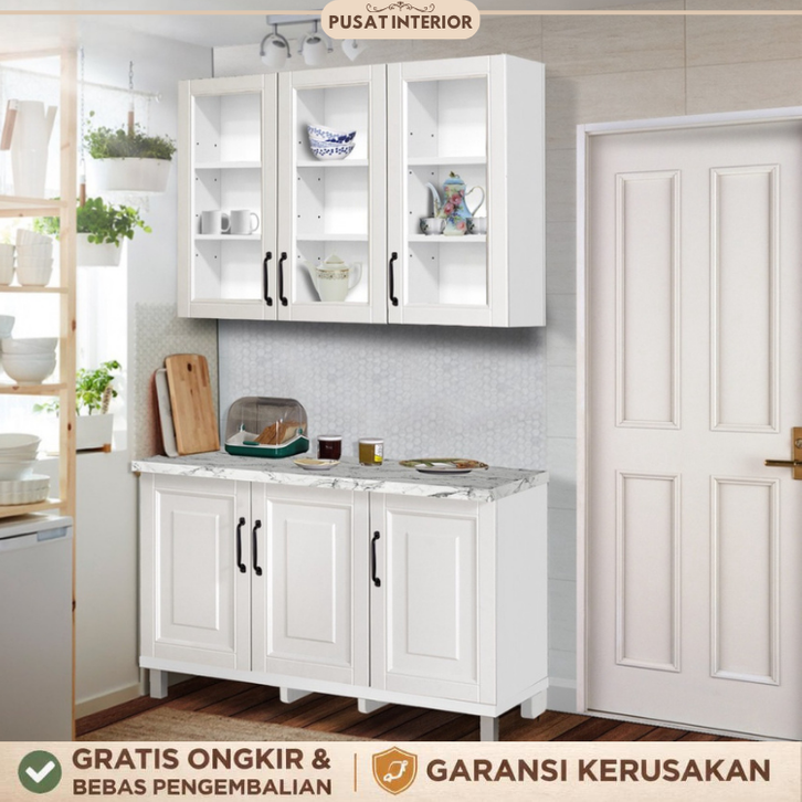 Kitchen Set Lemari Atas Bawah 2 dan 3 Pintu Minimalis Scandinavian White Putih - Mutiara Gratis Ongkir