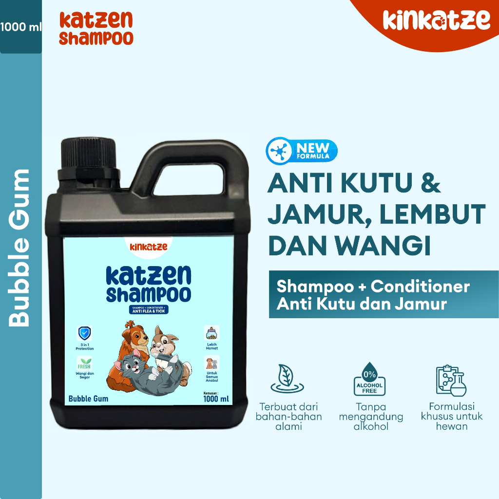 1 Liter Kinkatze Shampoo Kucing Anjing Kelinci ANTI FUNGAL & FLEAS untuk Jamur dan Kutu 3 in 1 Total Protection Super Wa