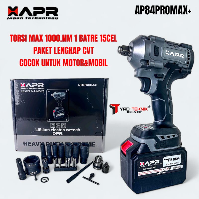 AP84PROMAX impact wrench APR 1000nm 88vf 15cell lengkap aksesoris impact body kecil tenaga besar