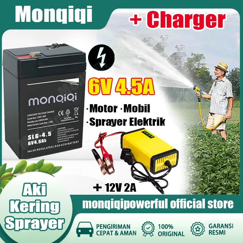 Monqiqi Aki Kering Sprayer ElektrikAki Kering Baterai UPS ASLI Aki 6V 4.5AH Battery Lampu Emergency Aki Kering Motor/Mob