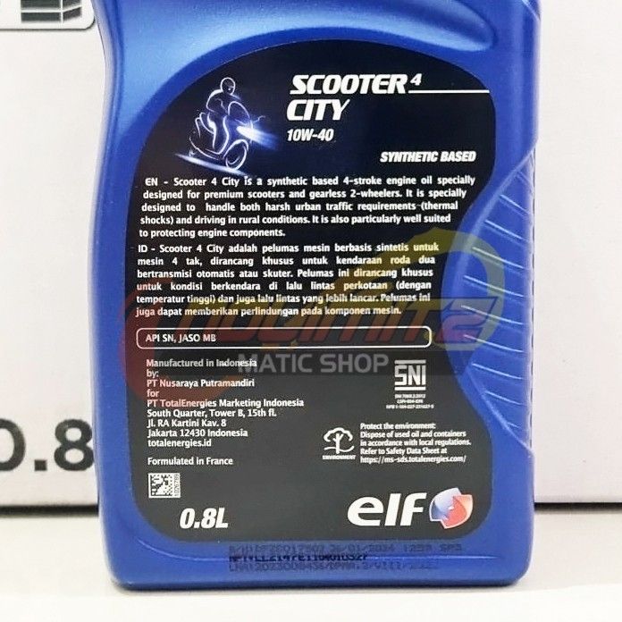 Promo Oli Motor Oli Motor Elf Scooter 4 City 10W-40 800mili Vario Beat Scoopy Mio Genio Fazzio
