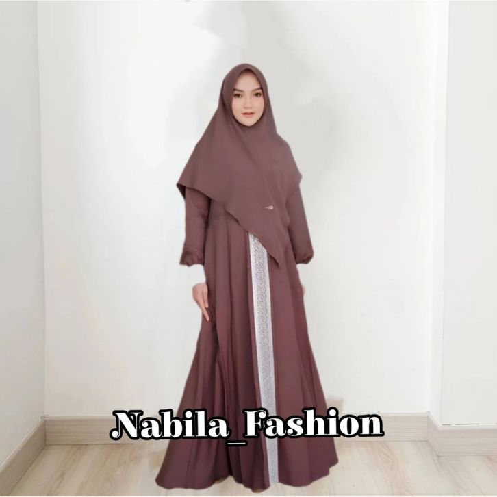 gamis lebaran 2026 Gamis Crinkle airflow motif renda Cantik premium/Gamis Lebaran Terbaru 2026 ful varian renda kekinian