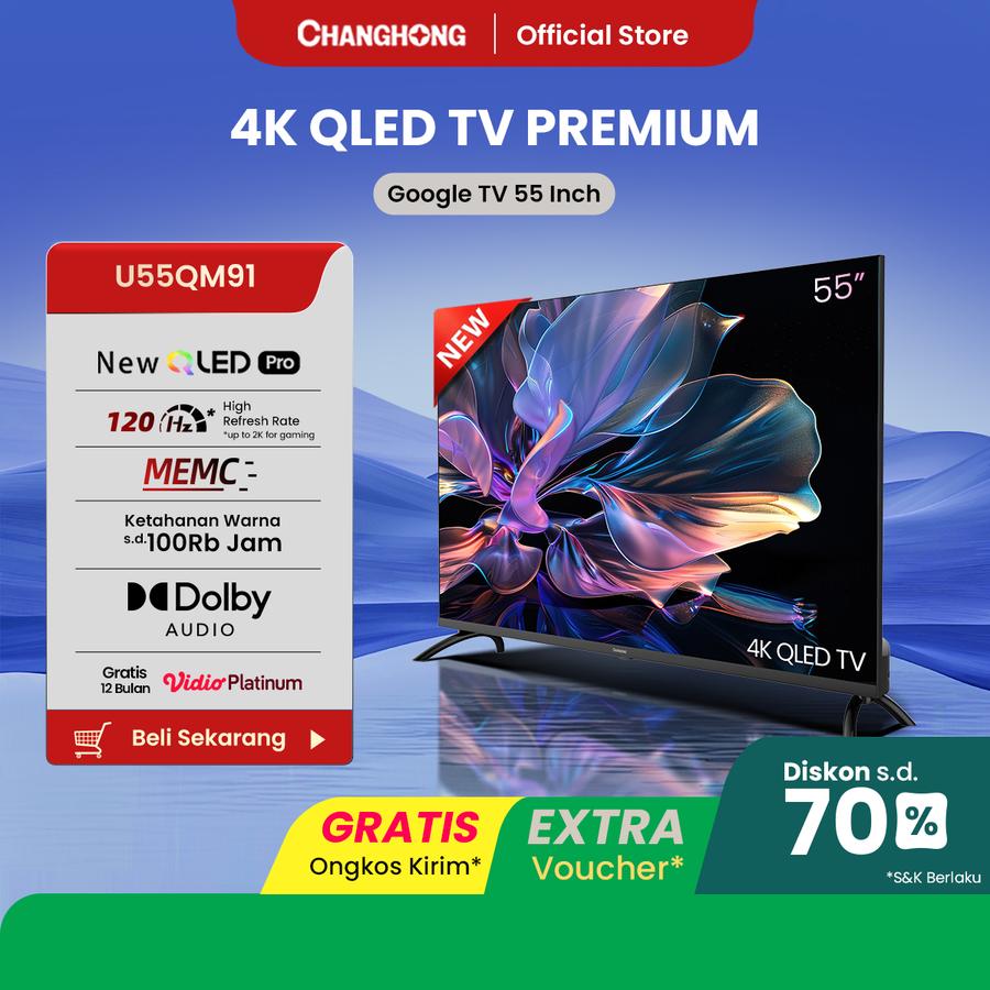 Changhong Google TV QLED Pro 4K UHD PREMIUM U55QM91 55" Inch - changhong google smart tv