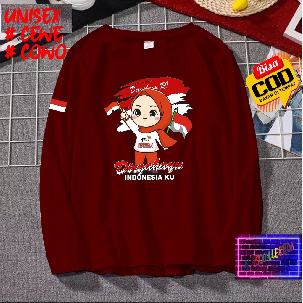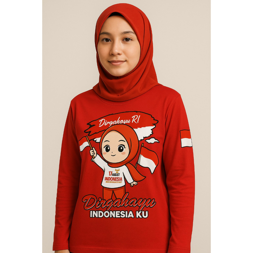 Lengan Panjang Wanita Hut Jilbab RI 80 Kaos Terlaris 17 Agustus 1945 Kemerdekaan Indonesia Kaos Merah Putih Hitam Kaos C