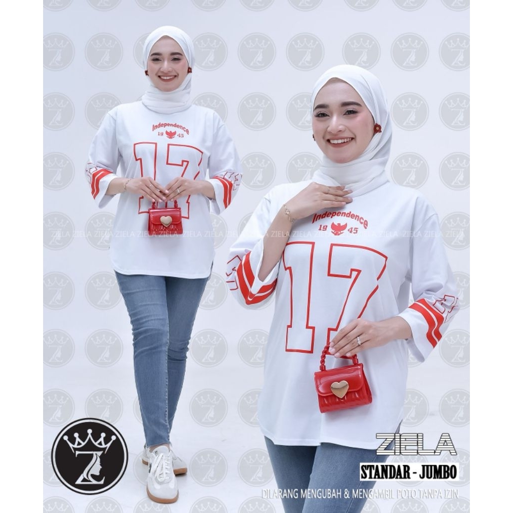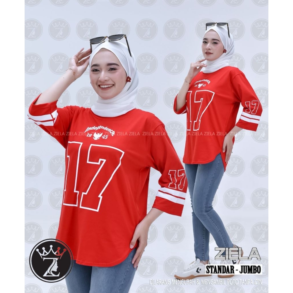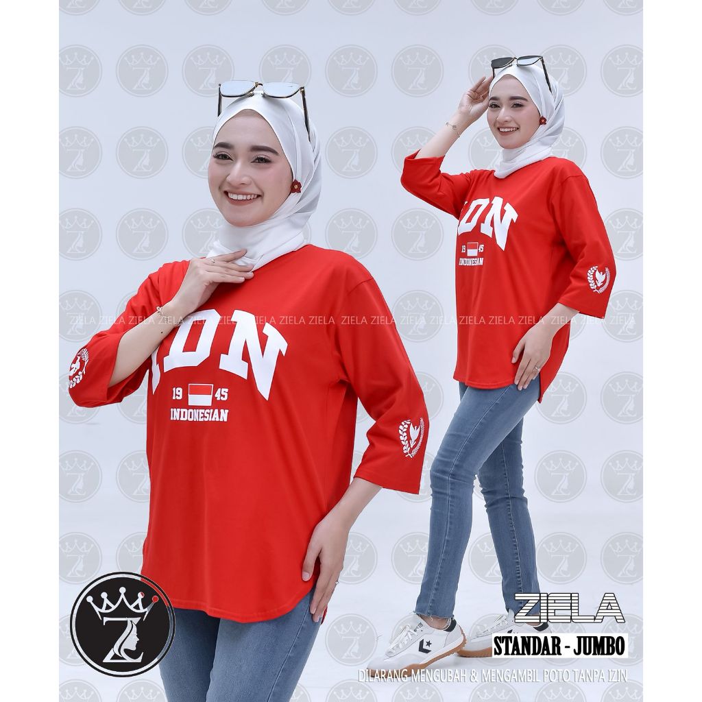 Atasan wanita 17 agustusan lengan 7/8 terbaru ZIELA standar jumbo / Baju kaos merah dan putih wanita INDONESIA 17 agustus 2025