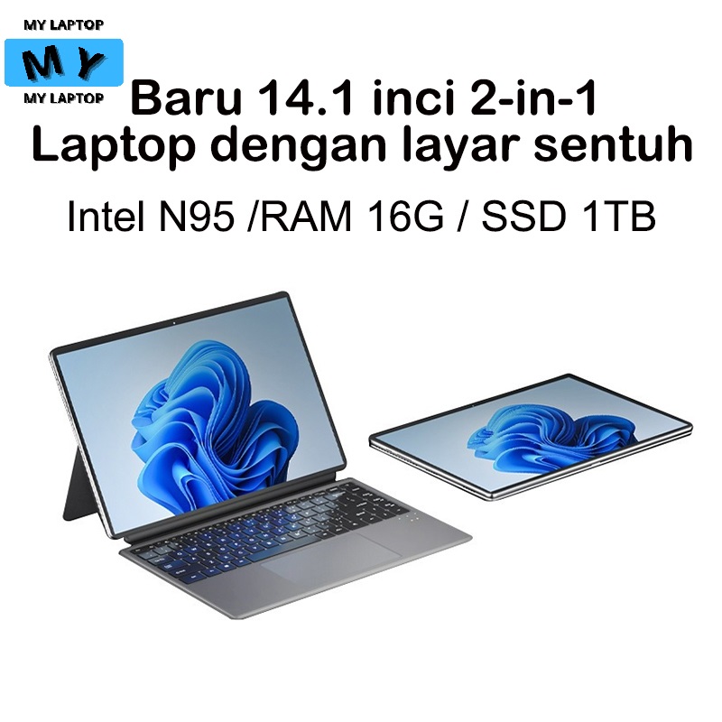 Laptop/Tablet 2-in-1 dengan layar sentuh, prosesor Intel generasi ke-12, ukuran 14,1 inci, RAM