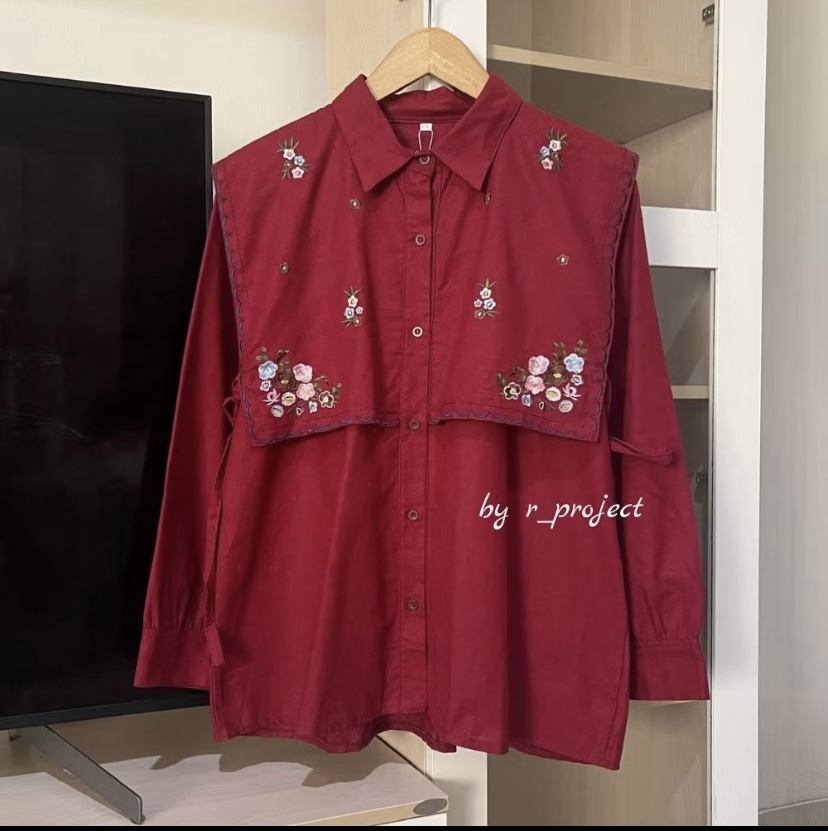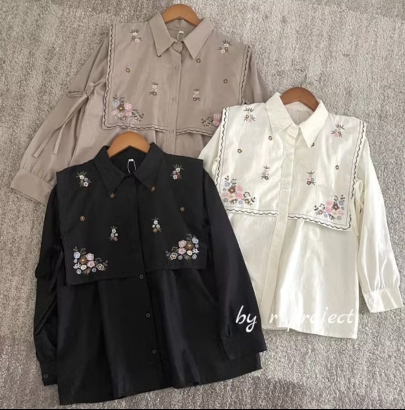 KEMEJA BORDIR BAHAN LINEN - Ukuran S M L XL XXL XXXL 5L - Kemeja Jumbo - Atasan Wanita Jumbo - Narika shirt - kemeja wa